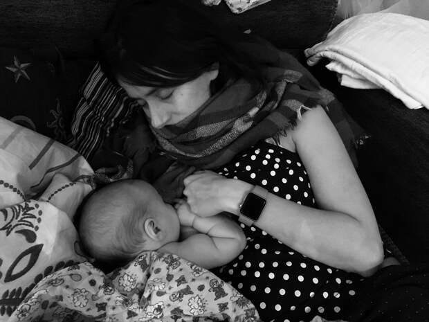 У меня достаточно благополучная ситуация и хороший старт. Я вырастила целую кучу крестников и племянников, у меня много многодетных друзей. Это не опыт материнский, это не про лишения, их не видишь, когда помогаешь. Но видишь быт кормящей матери, скажем так. И мне было к кому обратиться вот в этом: «Ааа, сопли, плохо сосет!»